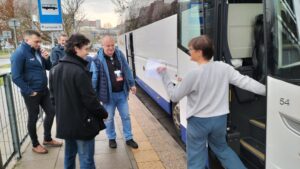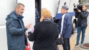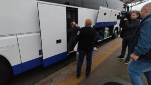 Z punktu recepcyjnego NRC – Norwegian Refugee Council udało się dziś wysłać pierwszy raz w historii dwa autobusy z uchodźcami jednocześnie. Łącznie do Norwegii i Holandii dotrze ponad 100 osób. To przede wszystkim zasługa niezmordowanych w załatwianiu transportów Lucy Orloff i Jacek Ostaś (w środku na zdjęciu z wnętrza autobusu).